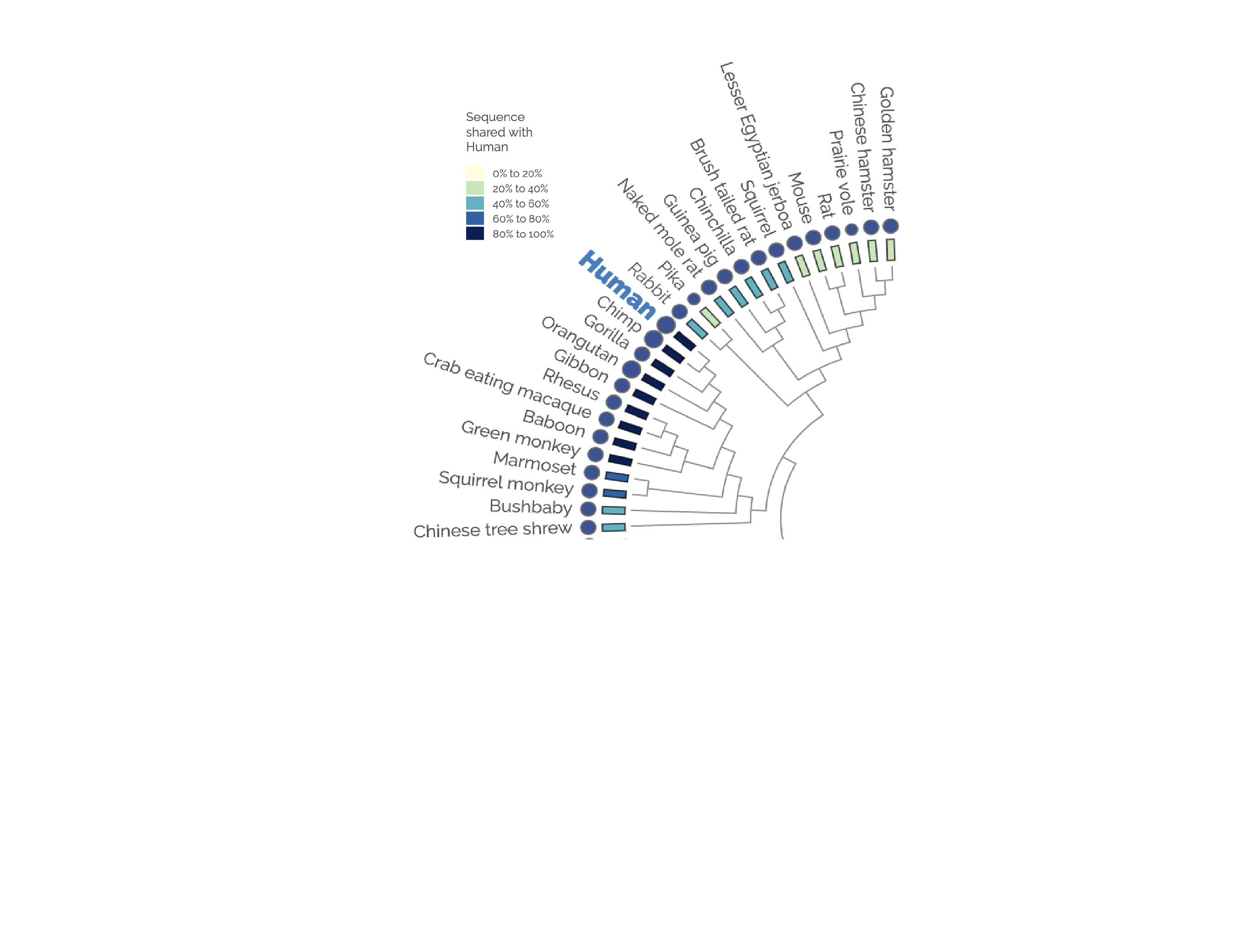 This D3 data visualization shows the phylogentic tree in a radial tree diagram, conveying relateness across Vertabrates.